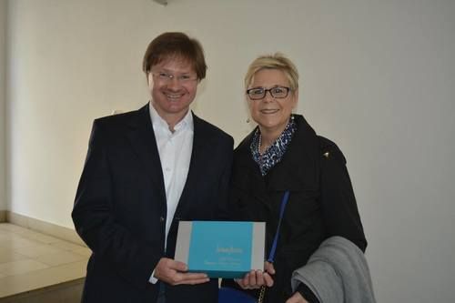 This morning was dedicated to our visit to the Orff Zentrum. This unassuming building at 16 KaulBachStrasse houses the official archives of Carl Orff. All of the original manuscripts are kept here and made available to researchers. The upper room is a large concert hall for performances and lectures. Dr. Thomas Rauch, director of the Zentrum (pictured here with Dr. Julie Scott from SMU), gave us a tour and talked about the history of the building.